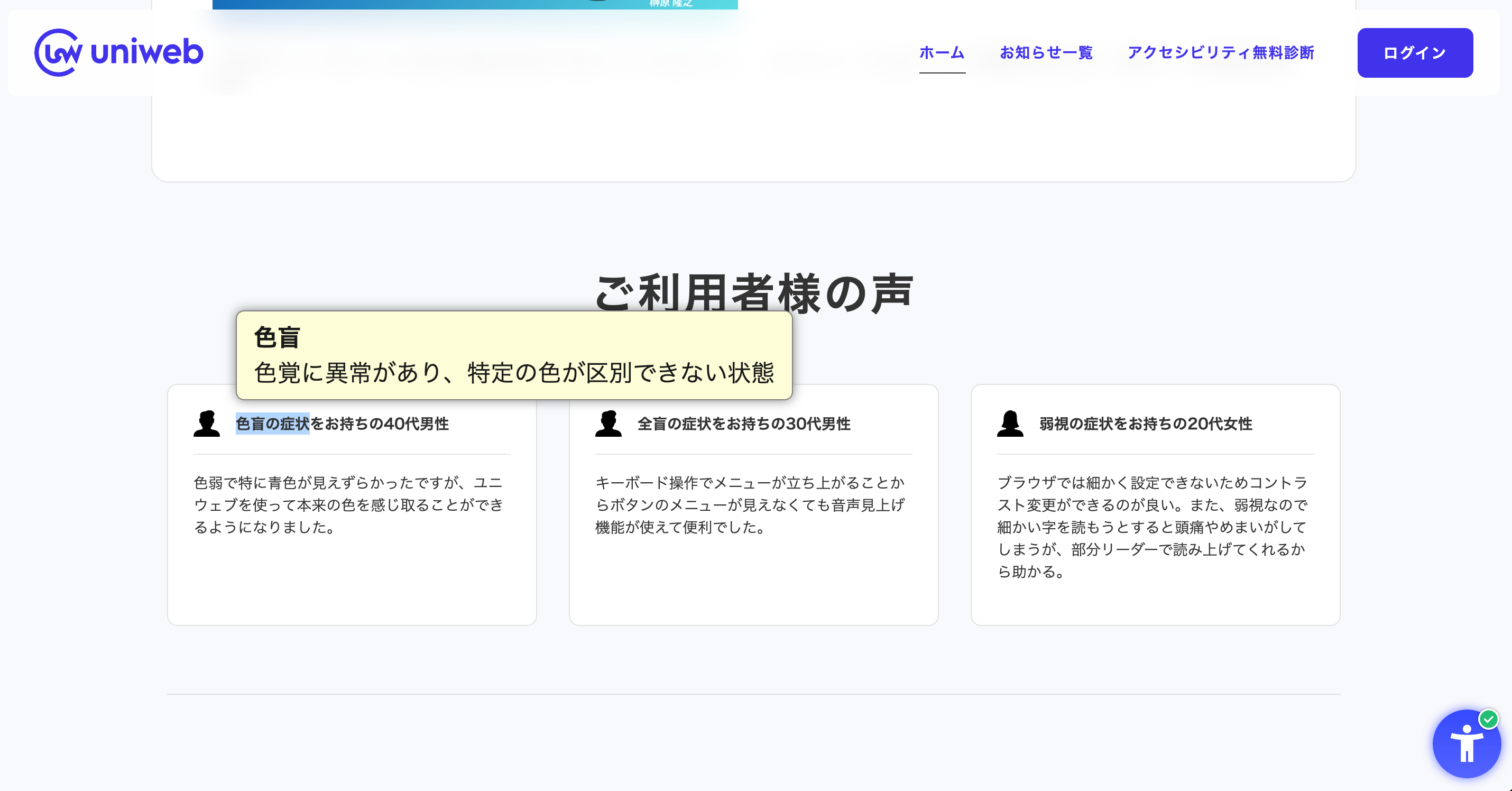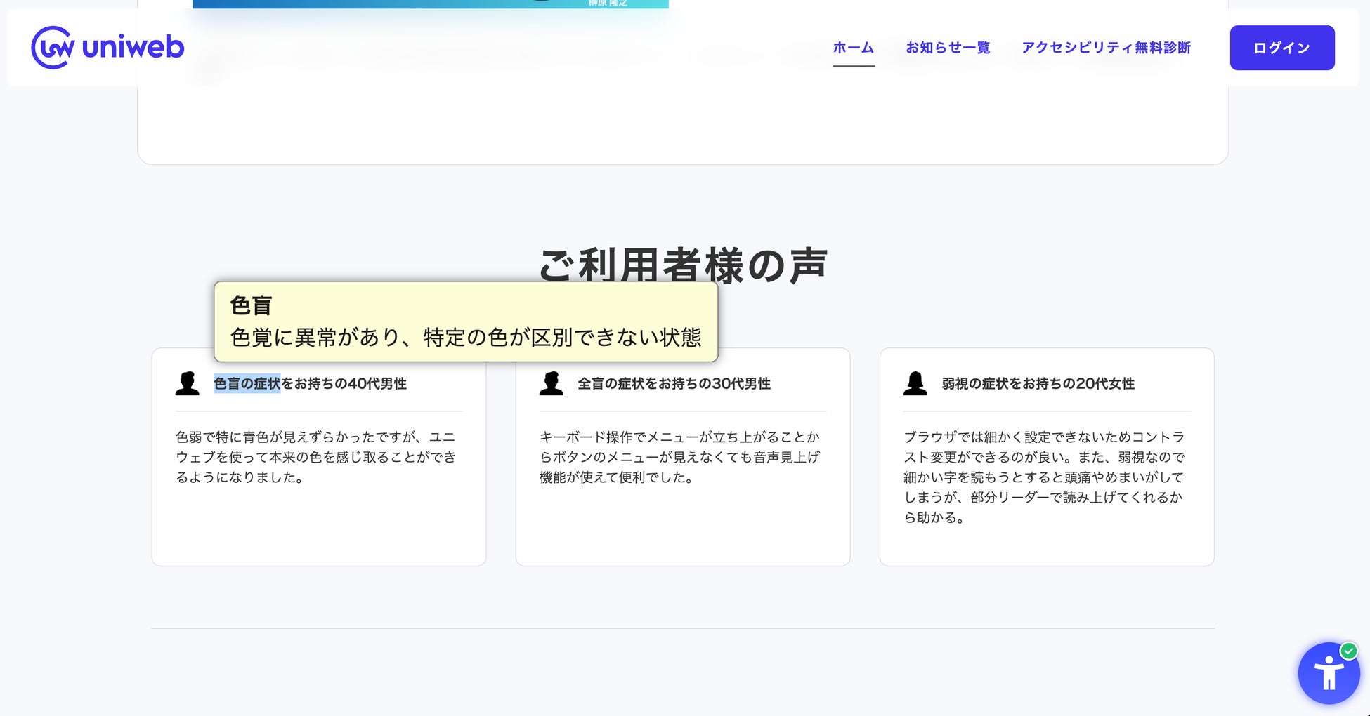 ・ウェブアクセシビリティサービス「ユニウェブ」の開発・運営(https://hellouniweb.com)