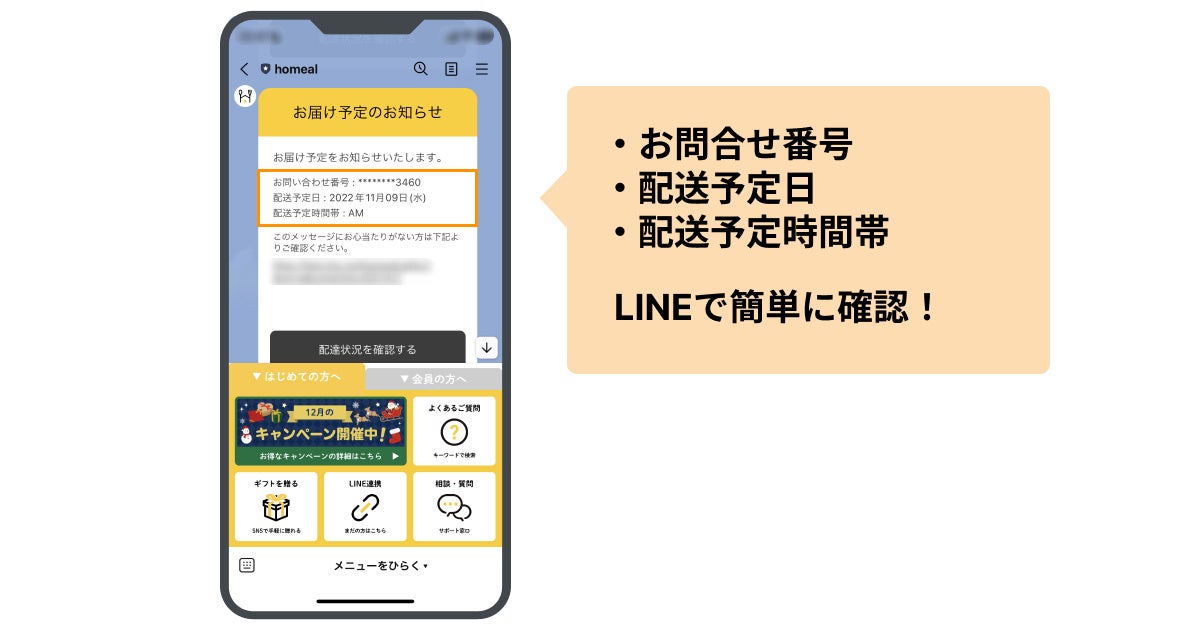 友だち以外にも配信できて、配信費用も安価なLINE通知メッセージで配送予定日時を確実にお知らせ
