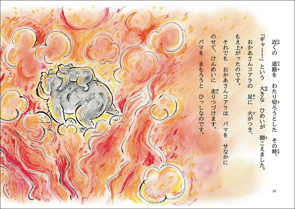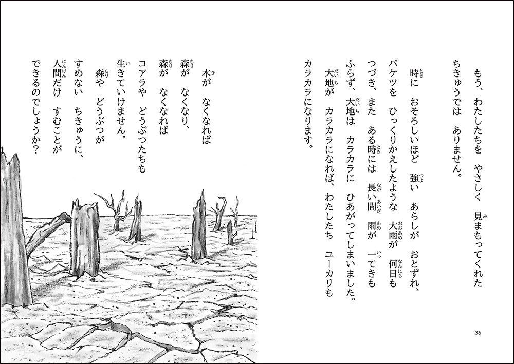 実際に起こったオーストラリアの大森林火災を取り上げ、親子コアラを主人公に、地球は誰のものなのかを問うおはなしをつくりました。