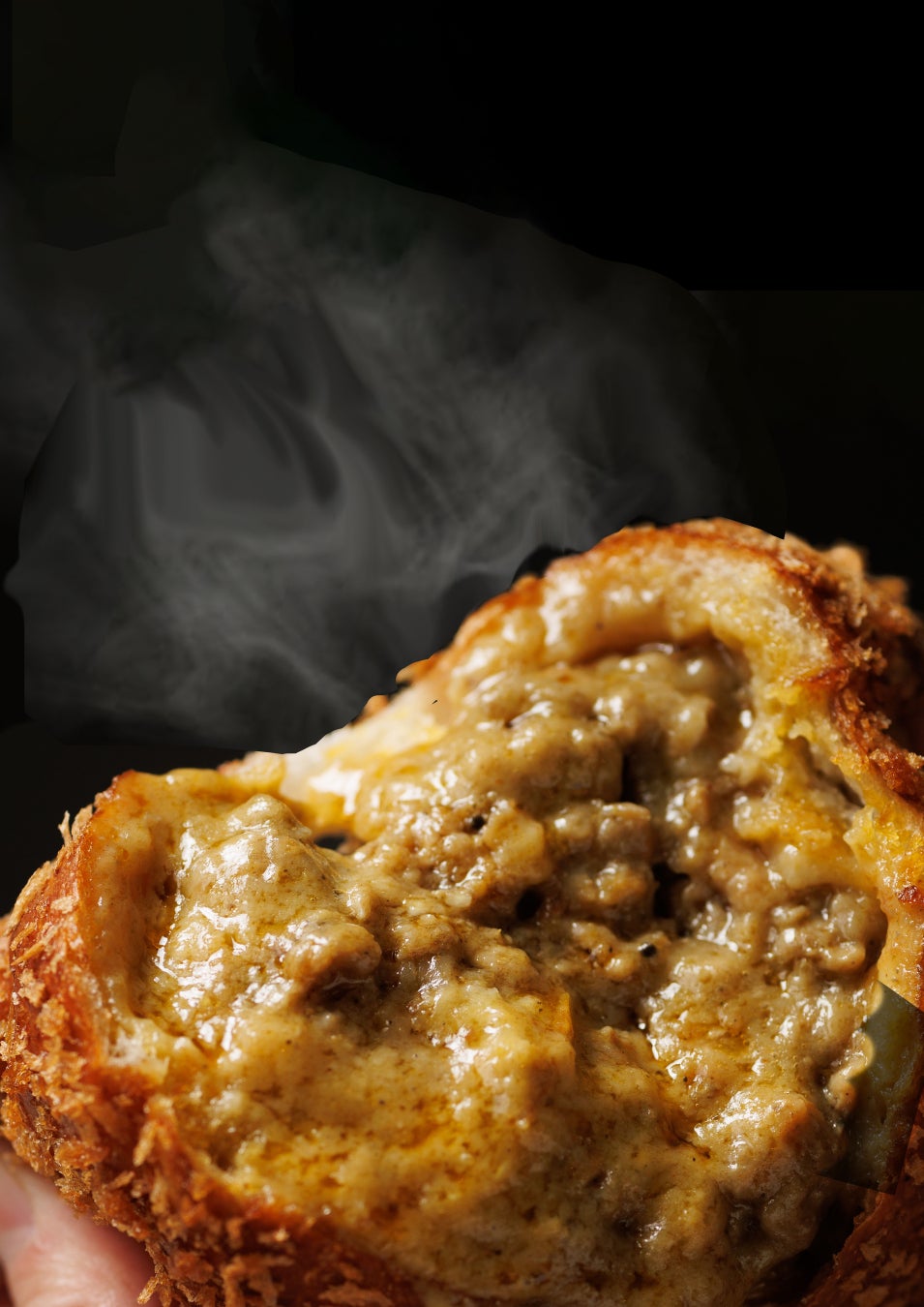 辛いもの好きにはたまらない大人のカレーパン!こだわり抜いた赤唐辛子の辛さの中に、玉ねぎとトマトの旨味が感じられる、奥行きのある味に仕上げています。