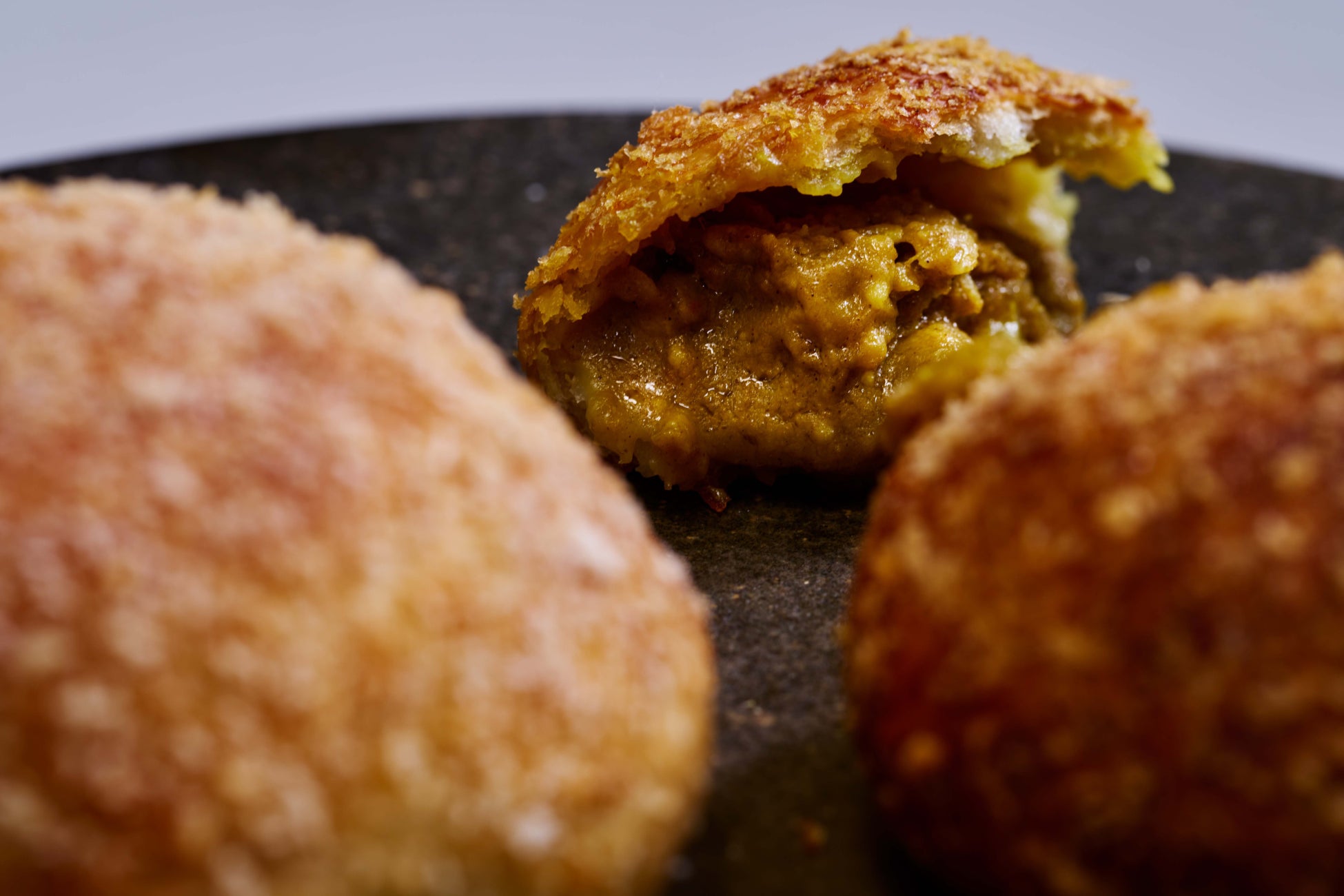 風味豊かなオーガニックのスパイスを11種類ブレンドた本格的なオリジナルカレーを、ナンのようにもちもちとしたパン生地で包んだ、食べ応えたっぷりのカレーパンです。