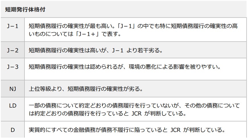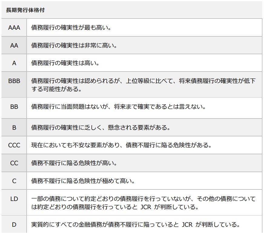 詳細は、JCRのホームページ(https://www.jcr.co.jp/ratinglist/finance/8703)をご覧ください。