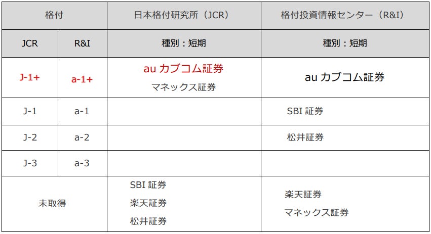 JCRがauカブコム証券の長期発行体格付を「AA」に引き上げ ~ 短期は「J-1+」でいずれも主要ネット証券会社最上位を維持 ~