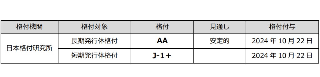 auカブコム証券株式会社(本社:東京都千代田区、代表取締役会長兼社長:二宮明雄、以下「auカブコム証券」)は、2024年10月25日、日本格付研究所(「以下、JCR」)による長期発行体格付が「AA-」から「AA」へと1段階引き上げとなったことをお知らせいたします。短期格付は最高水準の「J-1+」を維持しております。