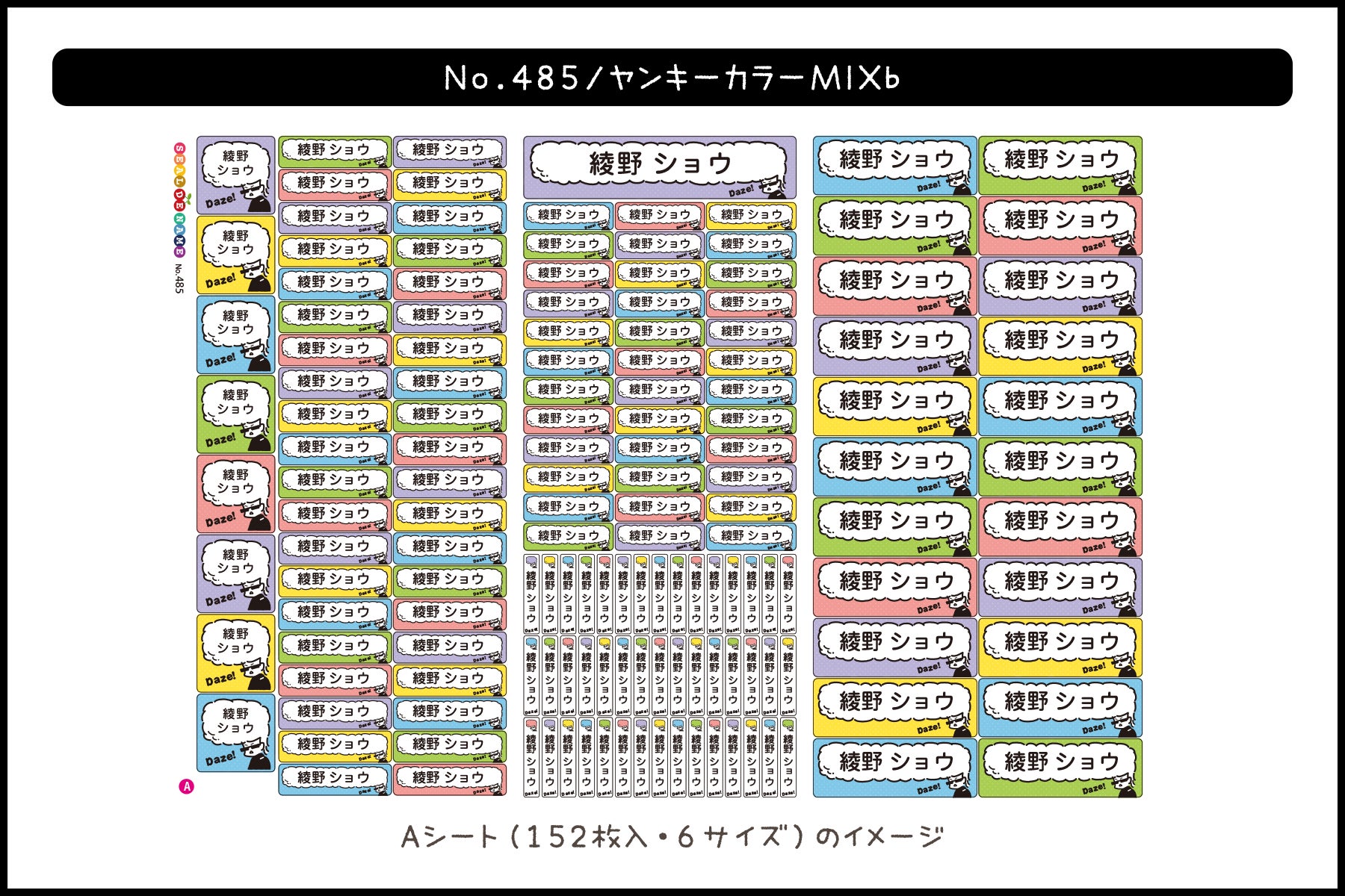 予想以上のご注文をいただいたことで「お名前シールにもヤンキーデザインを増やしたらもっと喜んでもらえるのでは?」と、企画をスタート。しかしながらスタンプと違いさまざまな形状やサイズがあるため、イメージを損なうことなく配置できるよう工夫を重ねてデザインを完成することができました。