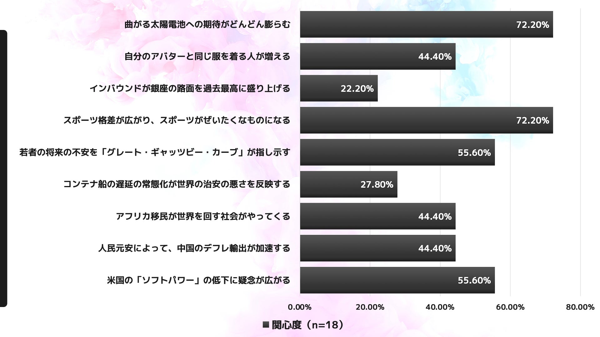 当日ご参加いただいた聴講者の中から、18名の方がアンケートに回答いただきました。9つのよげんに関する関心度と、セミナーの感想について共有いたします。