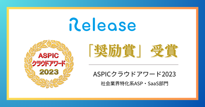 ASPICクラウドアワードは一般社団法人日本クラウド産業協会(ASPIC)により、日本国内の優秀かつ有益なクラウドサービスに対し表彰するアワードです。クラウド事業者及びユーザ企業の事業拡大を支援し、クラウドサービスが社会情報基盤として発展・確立することの一助になることを目的としています。各分野の有識者・専門家から構成された審査委員会により厳正な審査が行われ、レリーズが社会業界特化系ASP・SaaS部門において「奨励賞」を受賞いたしました。