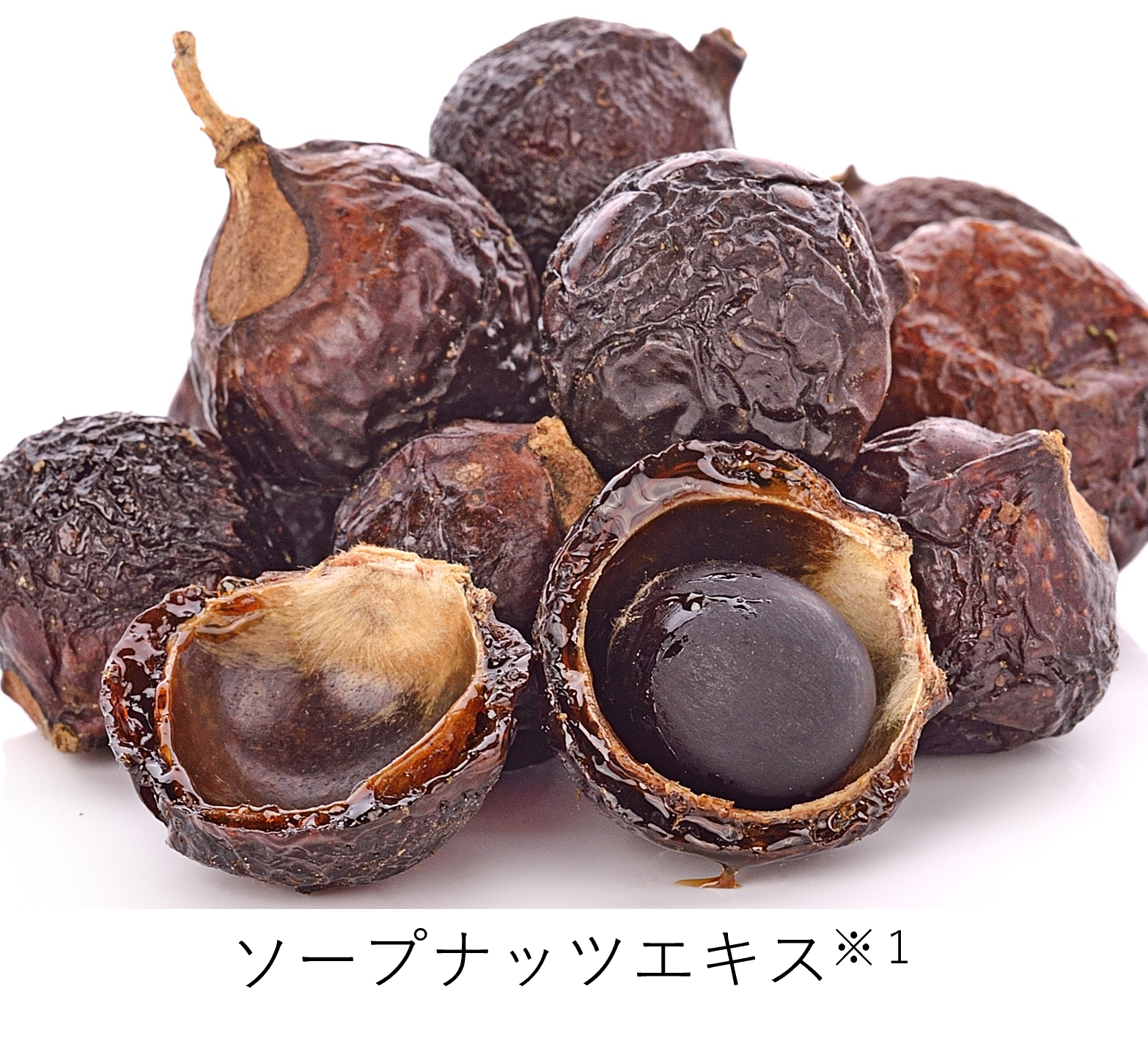 肌への優しさと泡立ちの良さを両立させるため、マイルドなヤシ由来の洗浄成分※4をベースに、天然の洗浄成分を含むソープナッツエキス※1を配合。うるおいを残しながらも汚れや古い角質をしっかり洗浄します。