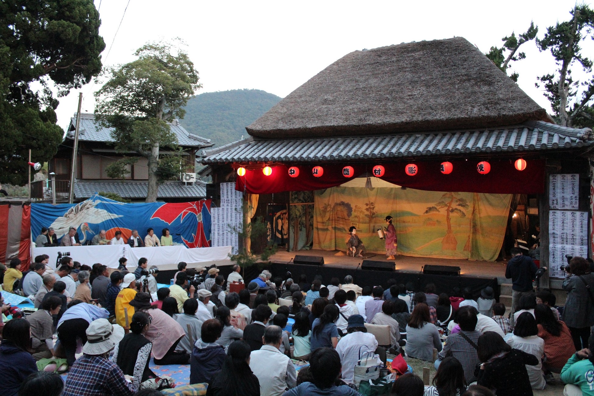 その起源は1600年代後半にさかのぼり、お伊勢参りに出かけた島民が上方でその華やかさに魅了され持ち帰り、地域の神事と結びつきました。以来、300年にわたり春日神社の奉納芝居として島民により上演が続けられています。