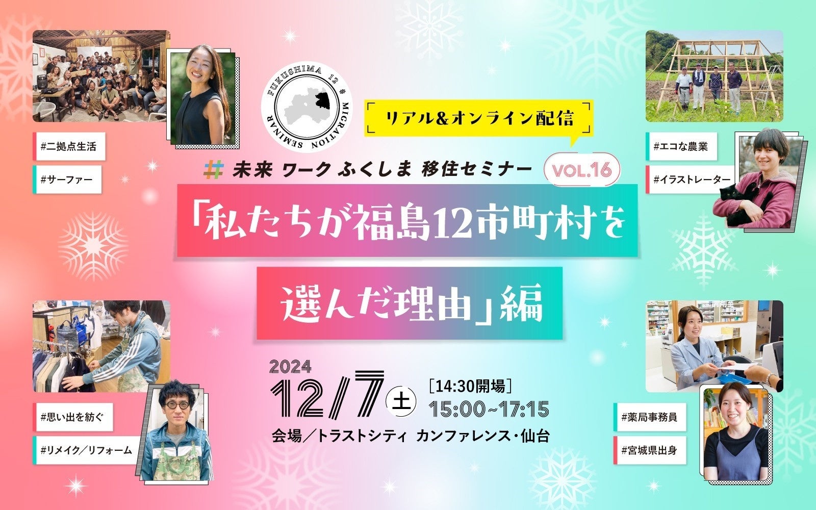 (公財) 福島イノベーション・コースト構想推進機構が運営する、ふくしま12市町村移住支援センター( https://mirai-work.life/ センター長:藤沢 烈)が主催する、福島12市町村(※1)で働くこと、生活すること、チャレンジすることを検討されている方に向けた、未来ワークふくしま移住セミナー。令和6年度は全6回開催します。