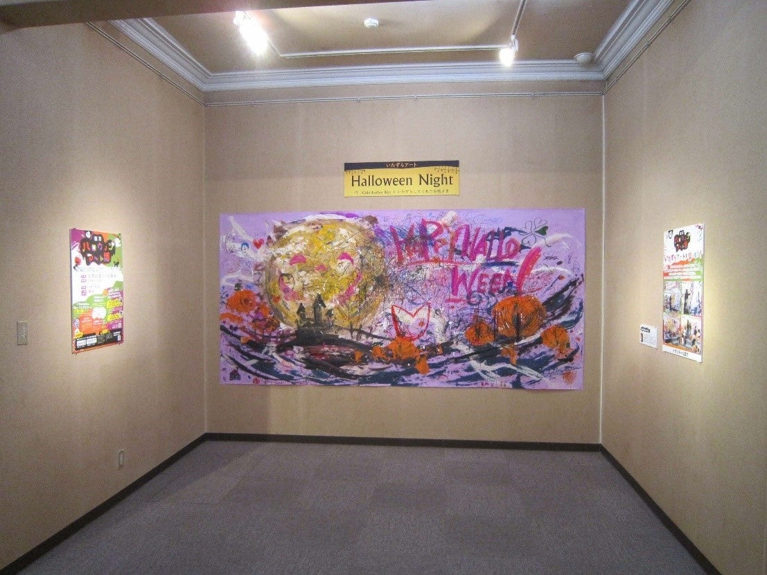 直方市出身の写真家「inu*maru」の作品や、10月15日・16日にイオンモール直方で開催された、「ハロウィンいたずらアートを楽しもう!」イベントで、福岡県出身のアートパフォーマー「Colorhythm Risa」が制作した作品に、筑豊高校生活デザイン科の学生や買い物客が“いたずら”をして仕上げた作品「いたずらアート」を展示しています。