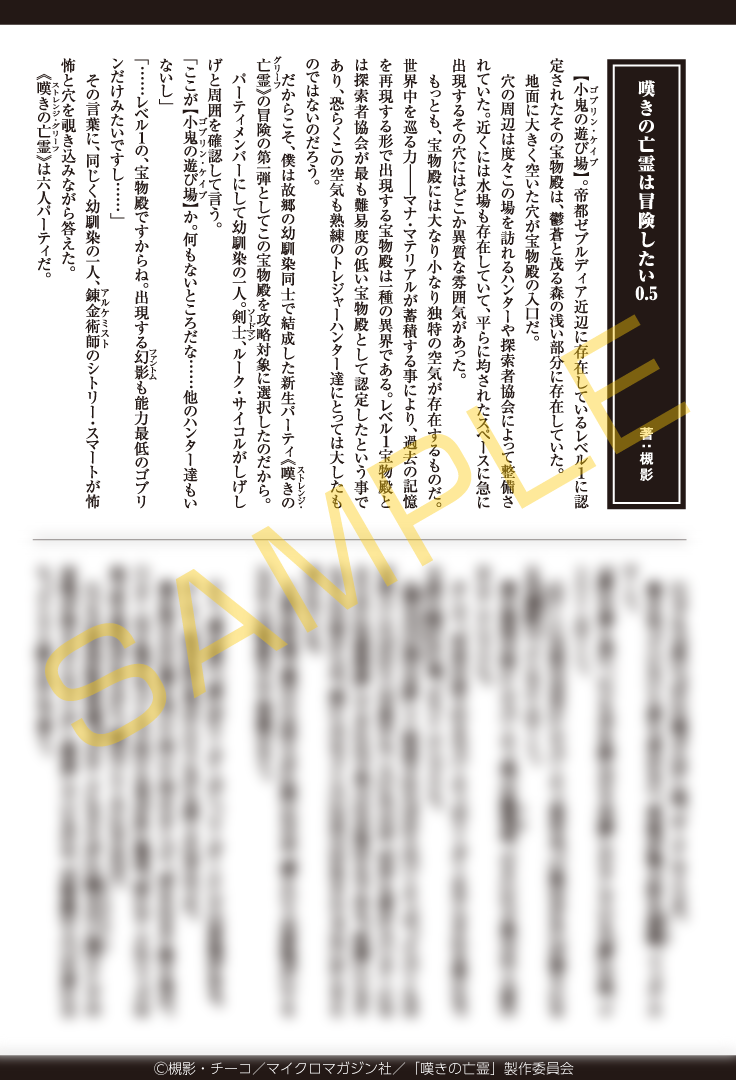 今回公開されたのは、第1巻封入特典のブックレット内にある「原作・槻影先生書き下ろしショートストーリー」の冒頭と、表紙の「キャラクター原案・チーコ先生描き下ろしイラスト」。