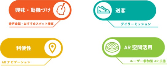 具体的にはキャラクターとの冒険、デイリーミッションなどのゲーミフィケーション要素、AR空間を活用したインタラクティブな広告展示などを組み合わせることによって体験価値を高めて、ユーザーを実際の送客へと導く仕組みを強化します。