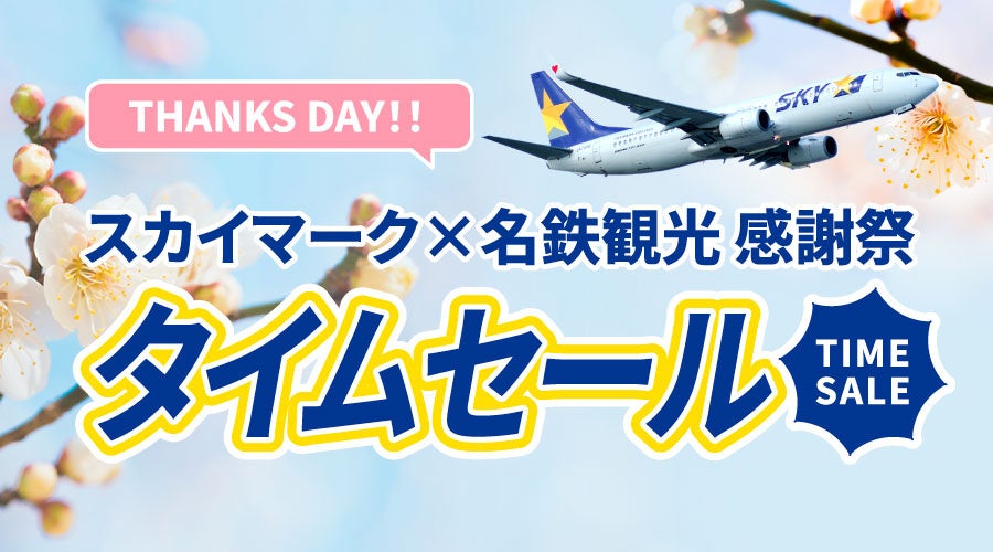 名鉄観光サービス株式会社(本社:愛知県名古屋市、代表取締役社長:岩切道郎)は、2026年1月28日(水)より2月17日(火)までの期間限定で、スカイマーク利用の国内ツアー商品を対象とした「スカイマーク×名鉄観光感謝祭 タイムセール」を開始いたしました。