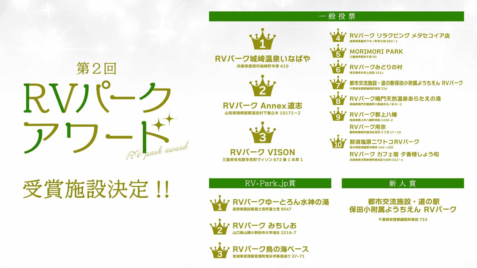 第2回「RVパークアワード」受賞施設公開!