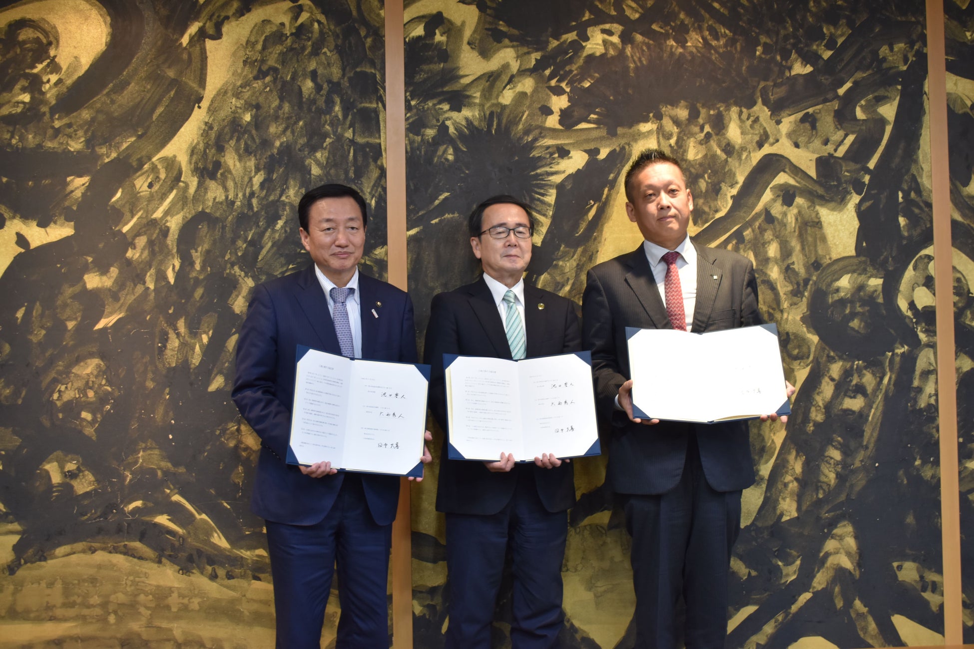 本協定は、相互の連携強化を通じて、地元での雇用拡大と定着を目指し、地域経済への貢献を目的としています。立地協定の締結に伴い、11月19日(火)、香川県庁本館にて締結式を挙行し、池田豊人香川県知事、大西秀人高松市長、株式会社BOD 代表取締役 田中大善が出席いたしました。