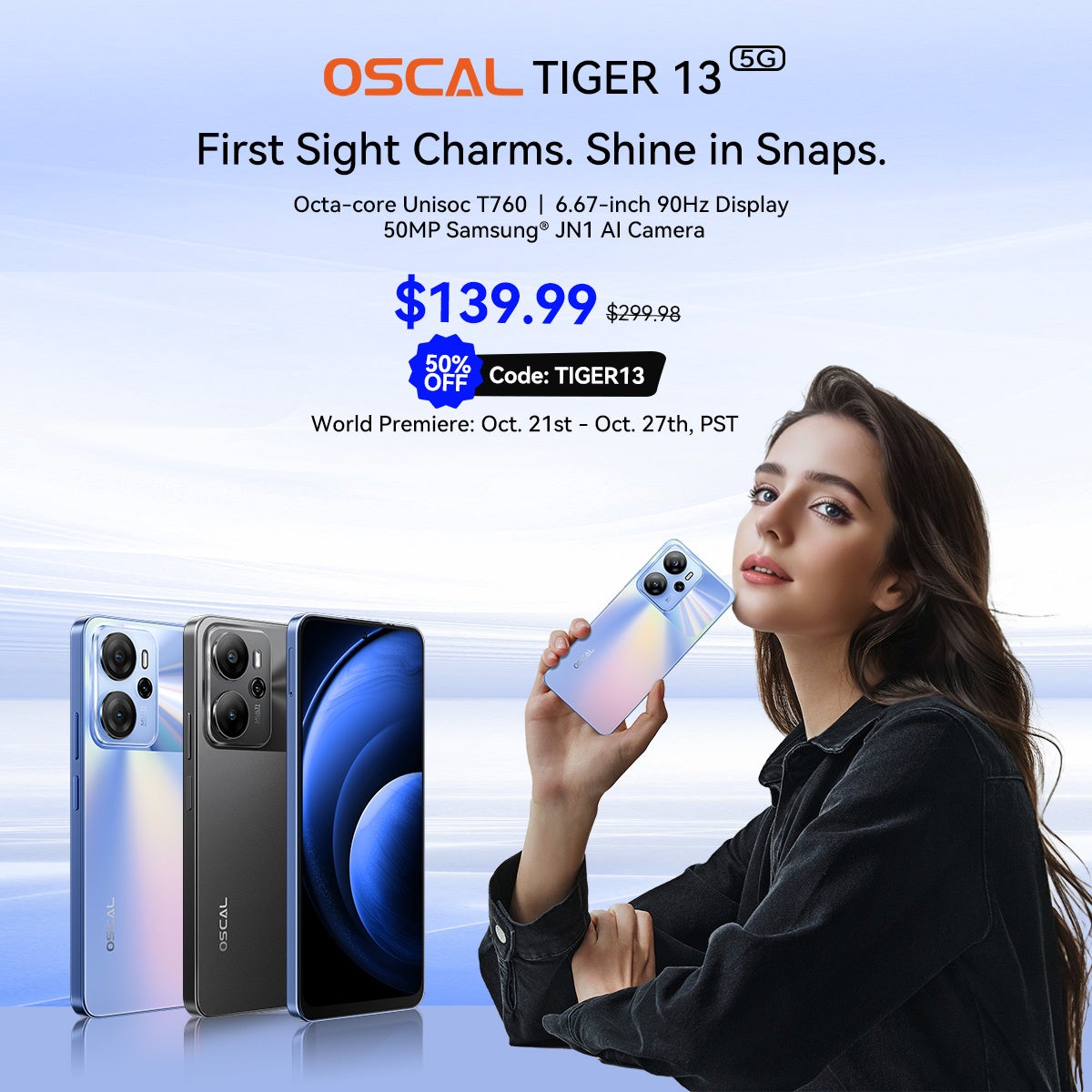 最新格安スマホ『OSCAL TIGER 13』発表!ワールドプレミア期間中に129.99ドルで購入可能!90Hz/UNISOC Tiger T760/Android14/16GB+256GB/5G対応
