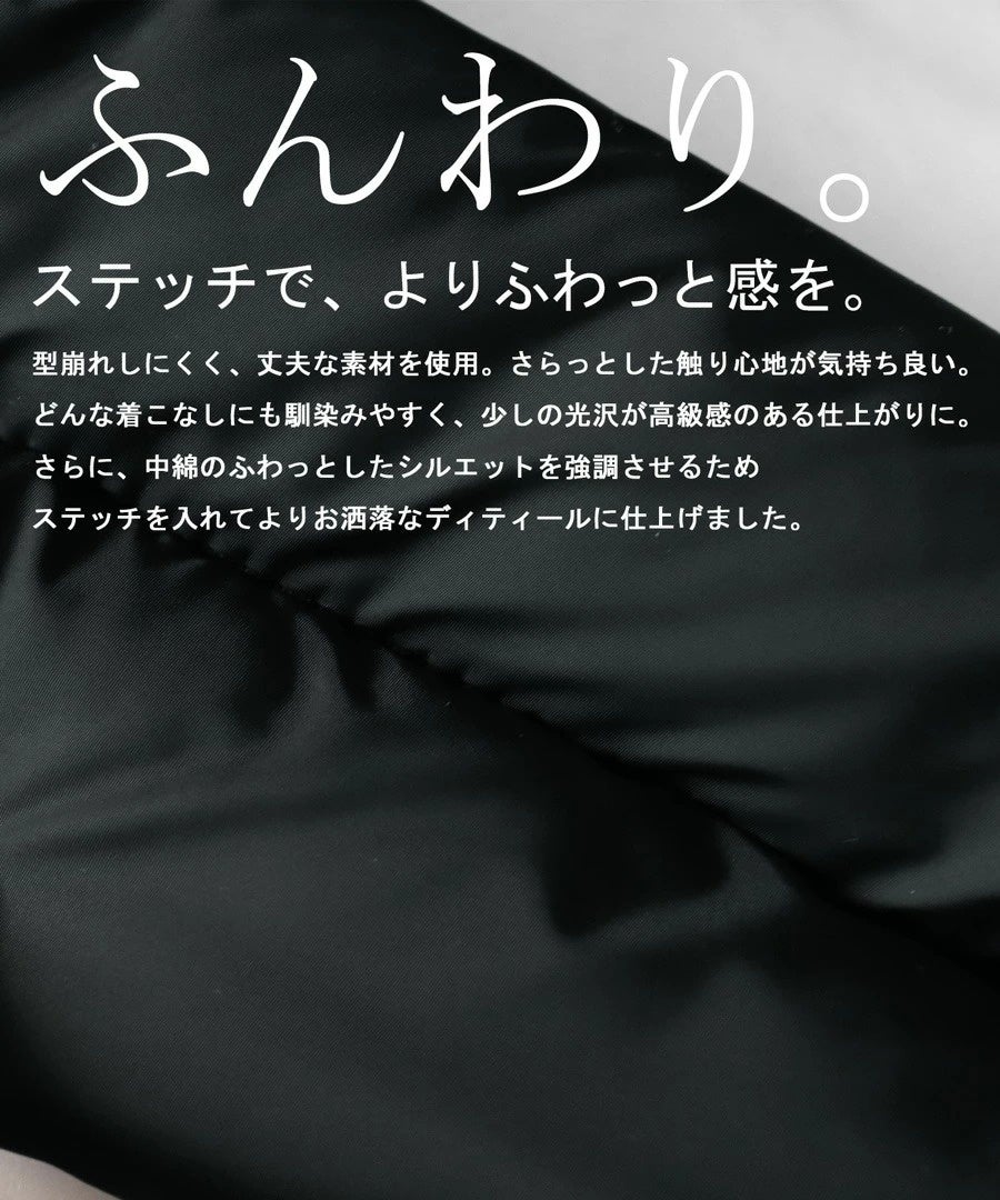 「中綿入りスマホショルダー」は、型崩れしにくく丈夫な素材を使用。さらっとした触り心地が気持ちよく、ほのかな光沢が高級感を感じさせます。中綿のふわっとしたシルエットを表現するため、ステッチを入れてよりお洒落なディテールに仕上げました。