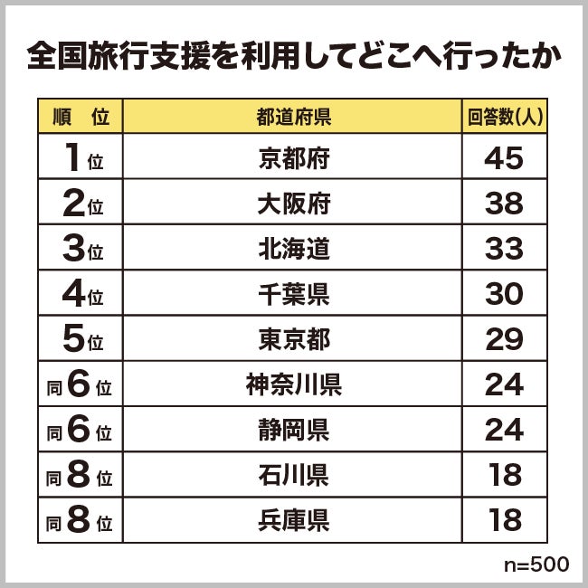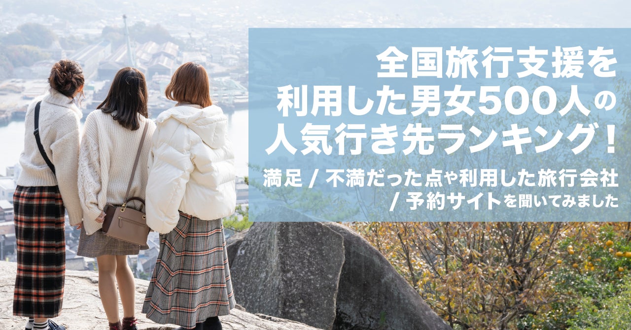 全国旅行支援を利用した男女500人の人気行き先ランキング!満足/不満だった点や利用した旅行会社/予約サイトを聞いてみました