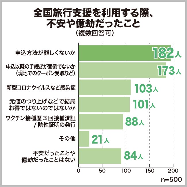 今回この全国旅行支援を実際に利用してみて、不安だったことや億劫だったことについても聞いてみました。