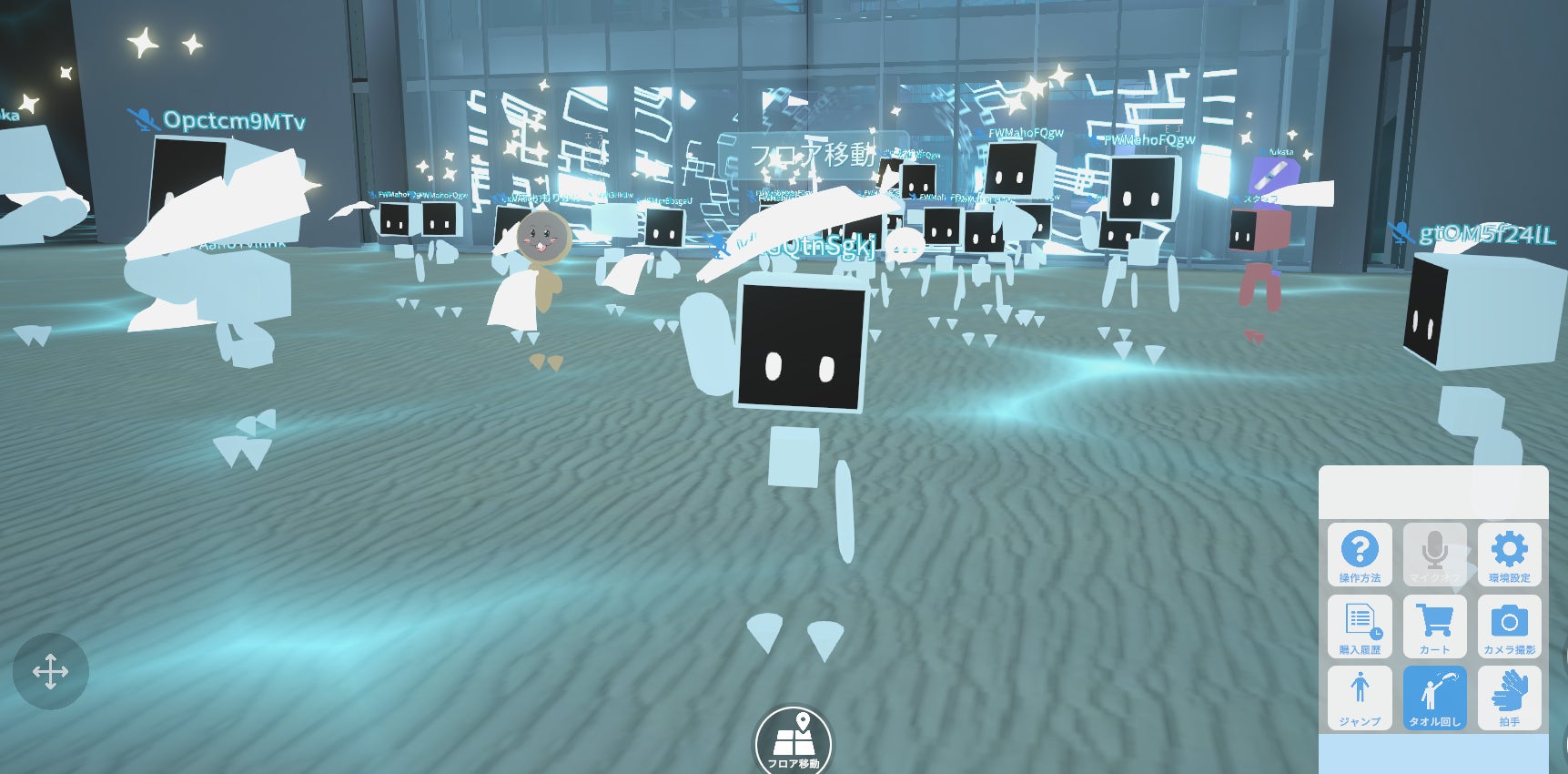 専用アプリのダウンロードがいらず、ブラウザから簡単にアクセスできるメタバース3D空間です。メタバース空間内では、自分のアバターを操作しながらEC機能や音声通話機能、チャット機能、翻訳機能で世界中のユーザーとコミュニケーションを取りながらお買い物やライブ配信を楽しむことができます。