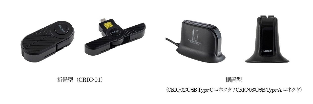 ラインアップは折畳型と据置型の2種計3品番。使用頻度や用途に合わせてお選びいただけます。折畳型(CRIC-01)は使わない時にコンパクトに折りたためるため保管や持ち運びに便利です。据置型(CRIC-02 / CRIC-03)は安定した形状で片手でもカードを挿入しやすくなっています。なお、据置型は2タイプのコネクタから選べる2品番展開です。(USB type-C/USB type-A)