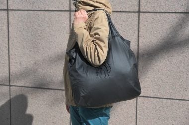 耐久撥水加工の10デニールナイロンリップストップ生地を採用した、ポケッタブル仕様のトートバッグです。