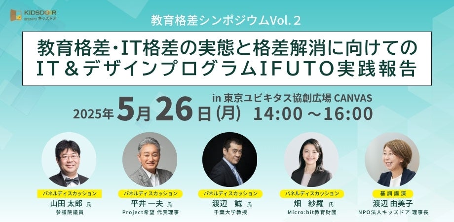 認定NPO法人キッズドアでは、2025年5月26日(月)に「教育格差シンポジウムVol.2」を開催いたします。