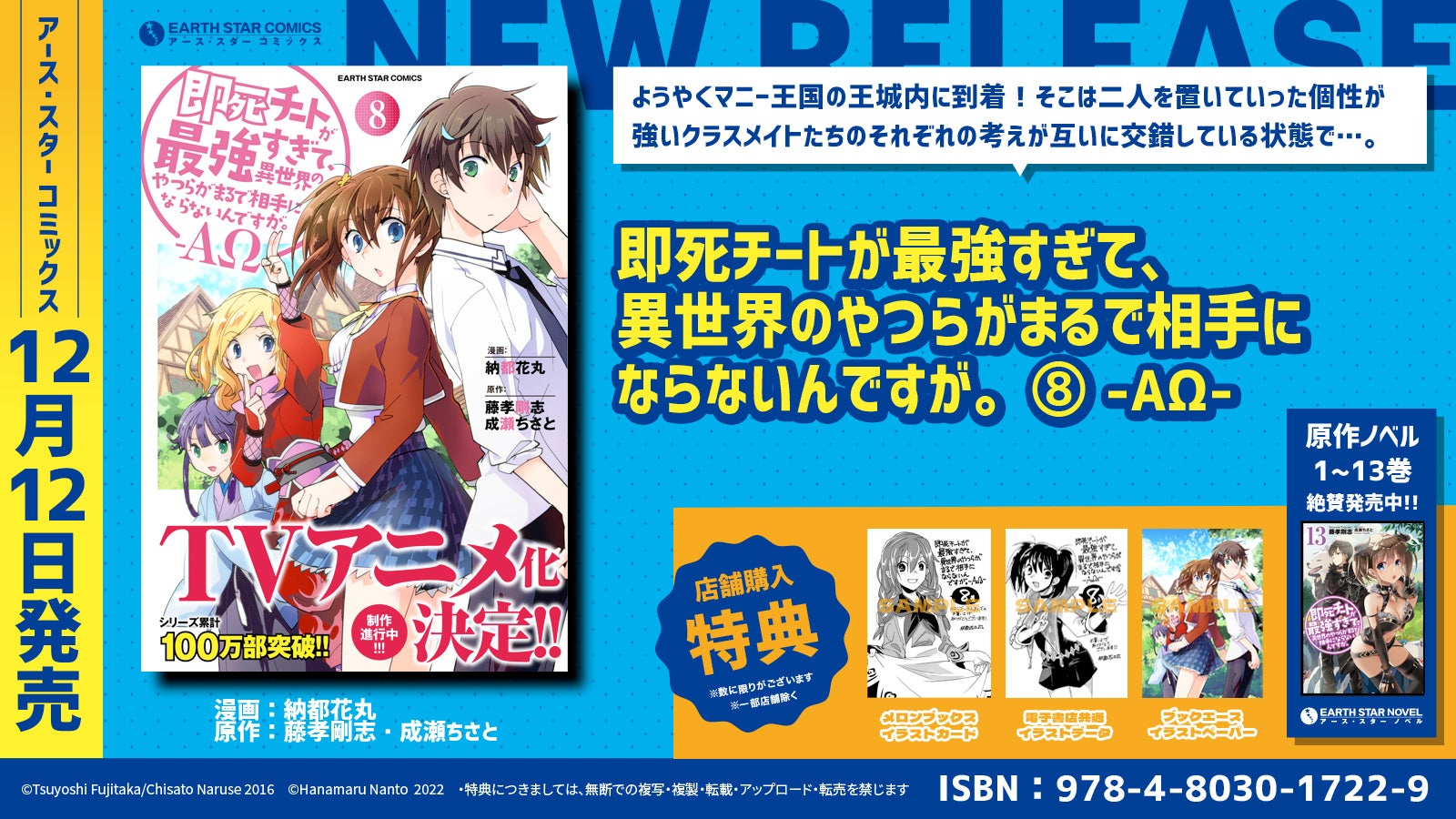 TVアニメ化決定『即死チートが最強すぎて、異世界のやつらがまるで相手にならないんですが。-ΑΩ-』コミックス第8巻12月12日(月)発売