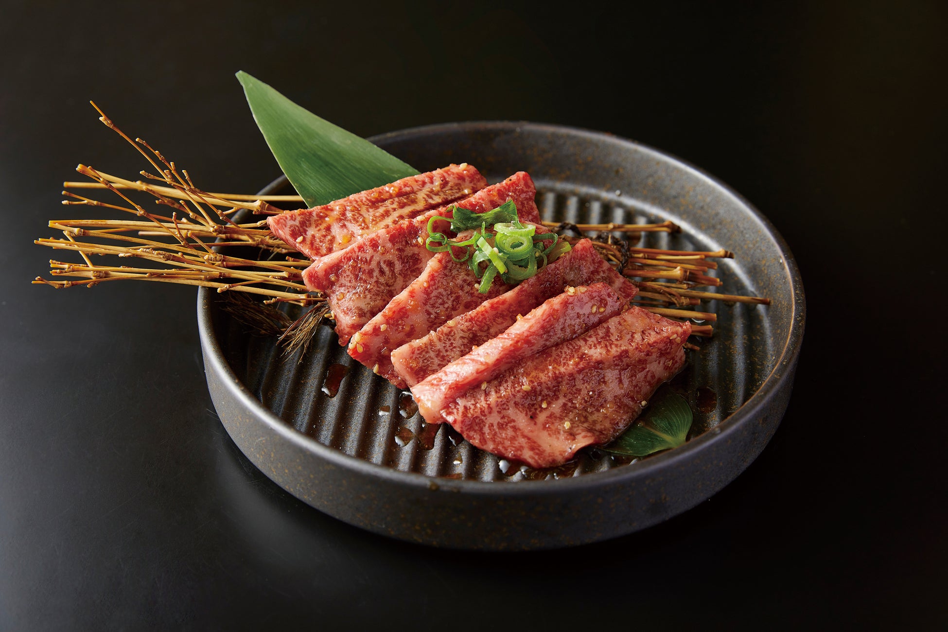 近江牛のバラ肉の中でも、厳選した上モノ部位である、「カイノミ、フランク、インサイド、タテバラ」のみを使用。秘伝の揉みダレを組み合わせることで、とてつもない旨味が出てくるのが特徴です。