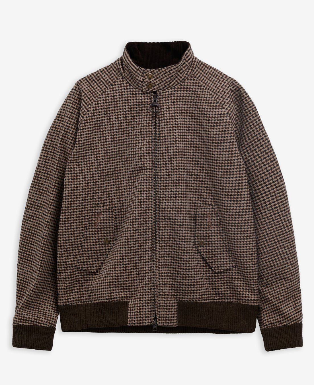 防水メンブレンを裏地に備えた千鳥格子柄の軽量ジャケット。ライニングにはBaracutaのフレイザータータンとBarbourのクラシックタータンを組み合わせています。