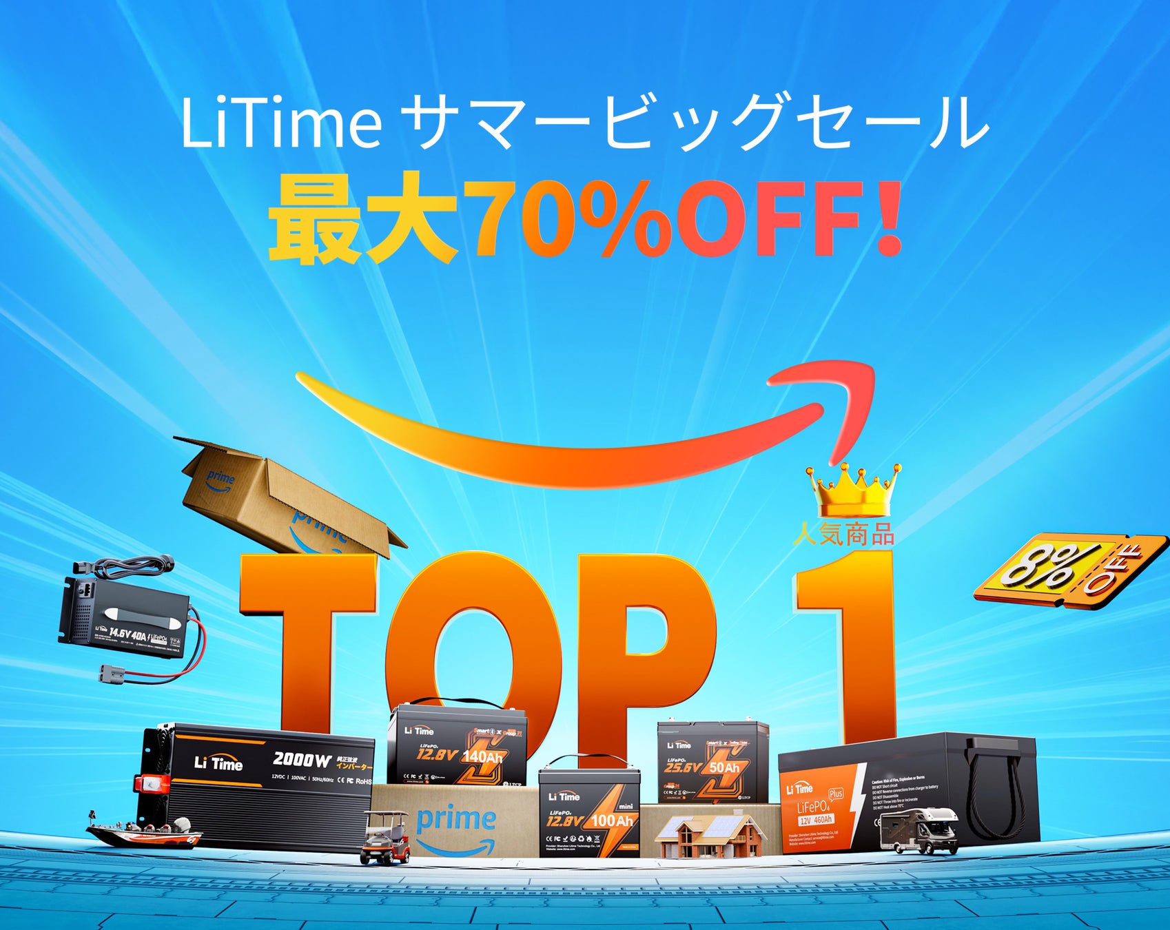 LiTime公式サイト限定!車中泊や防災に最適なLiFePO4大容量バッテリーが最大70%OFF。3段階セール+8%OFFクーポン+豪華プレゼント特典で、今だけのお得なチャンスをお見逃しなく。