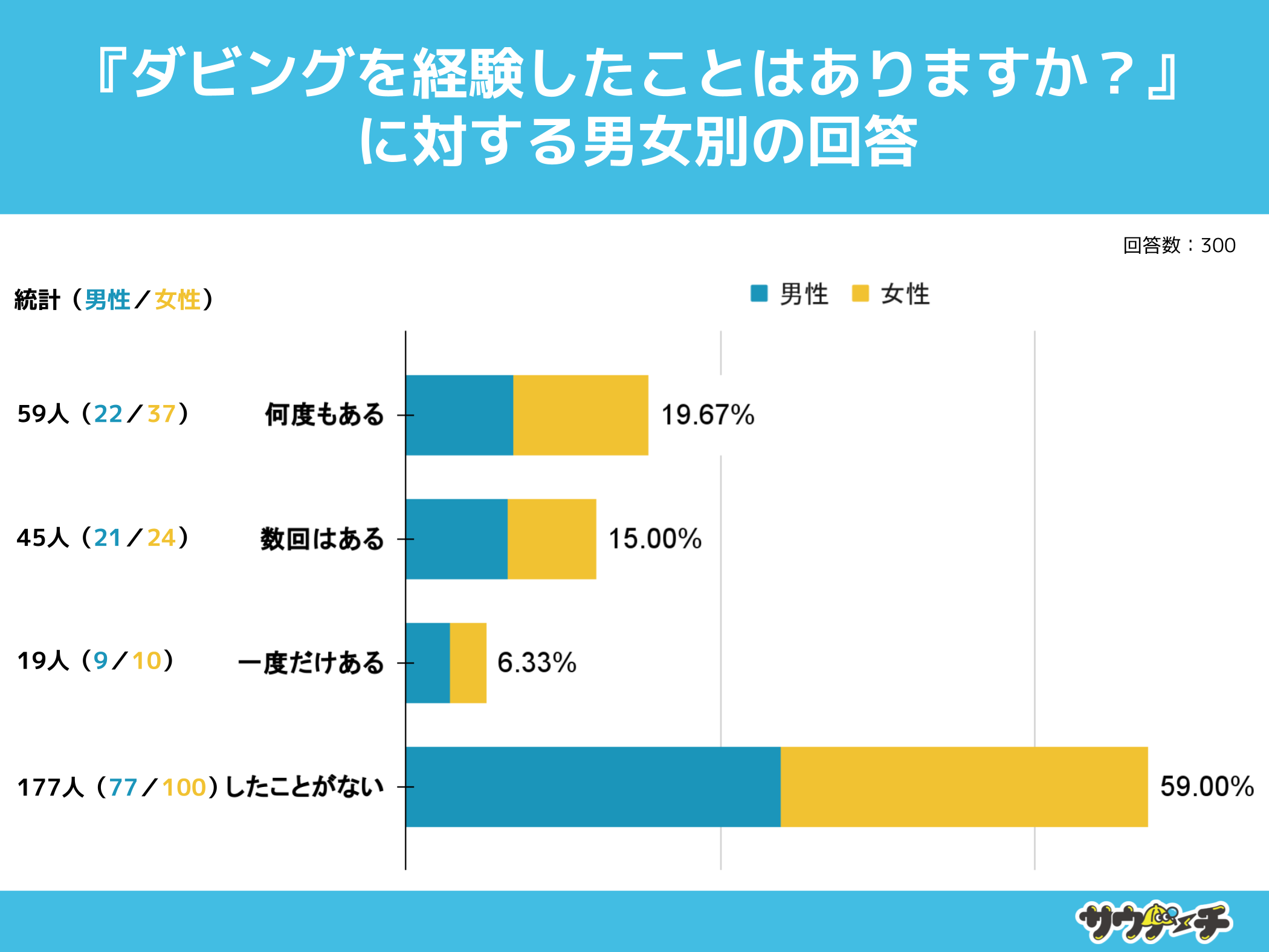 10〜30代男女を対象とした『ダビングを経験したことはありますか?』というアンケートで、最も多かった回答は「したことがない」で59%でした。