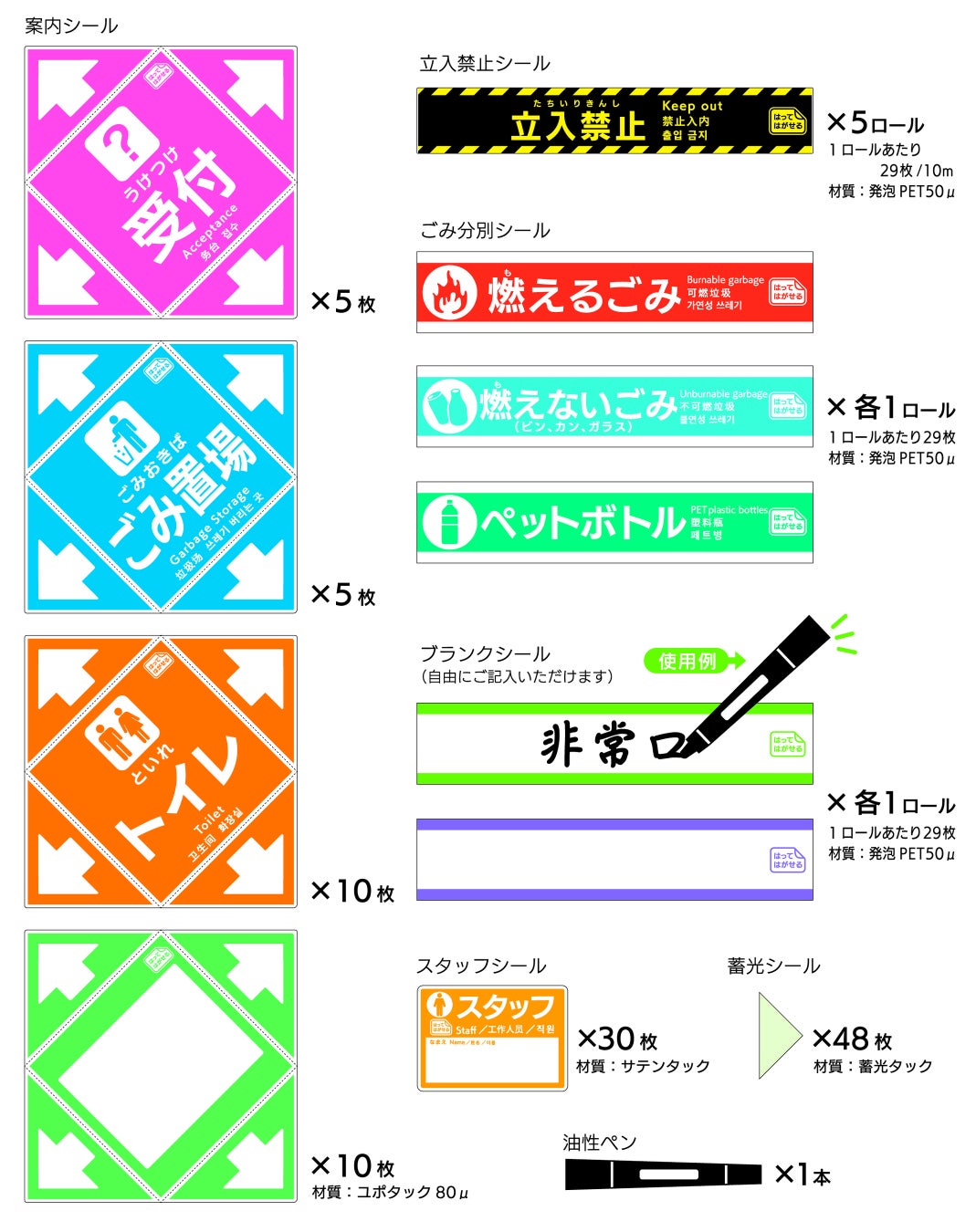 ・受付、ごみ置き場…各5枚/シールサイズ:縦25㎝×横25㎝