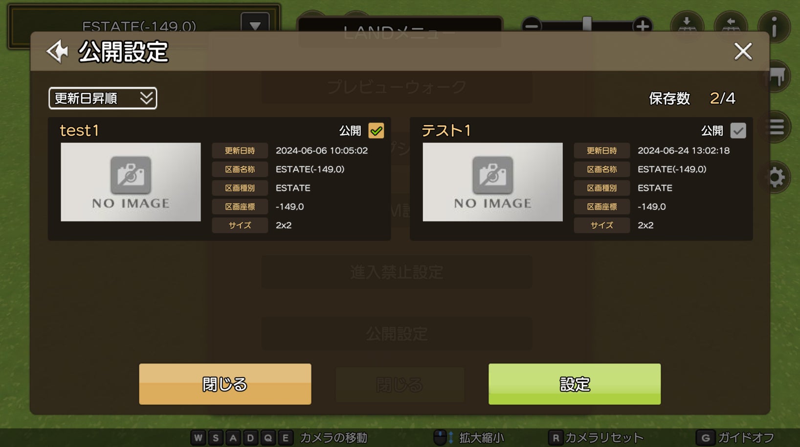 現在保存しているセーブデータから1つを選択し、「公開」にチェックをいれることで「LAND Viewer」より、自分以外の他者がLANDへ入場することが可能になります。