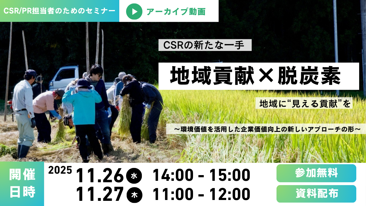 CSRの新たな一手:地域支援×農業支援で“見える貢献”を。環境価値を活用した企業価値向上の新しいアプローチの形について、セミナーを開催