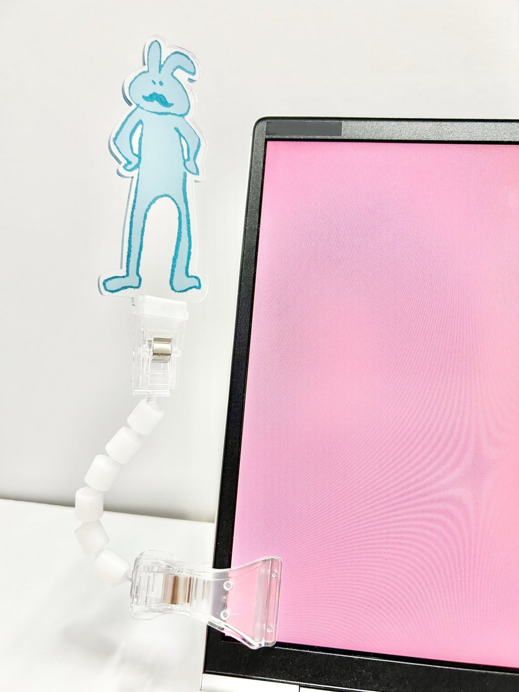 クリップが両側に付いているので、片方にグッズを取り付け、もう片方のクリップを好きな場所に挟むだけ。商品名の通り、「どこでも」推しのグッズをディスプレイすることが出来るありそうでなかった便利グッズです。