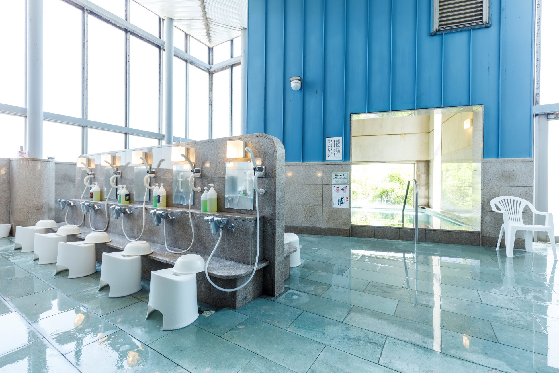 四角形の「箱湯」と円形の「筒湯」は月替わりで男女を入れ替え。湯上がりには、開放感あふれる広々とした休憩スペースでくつろぎの時間をお楽しみください。