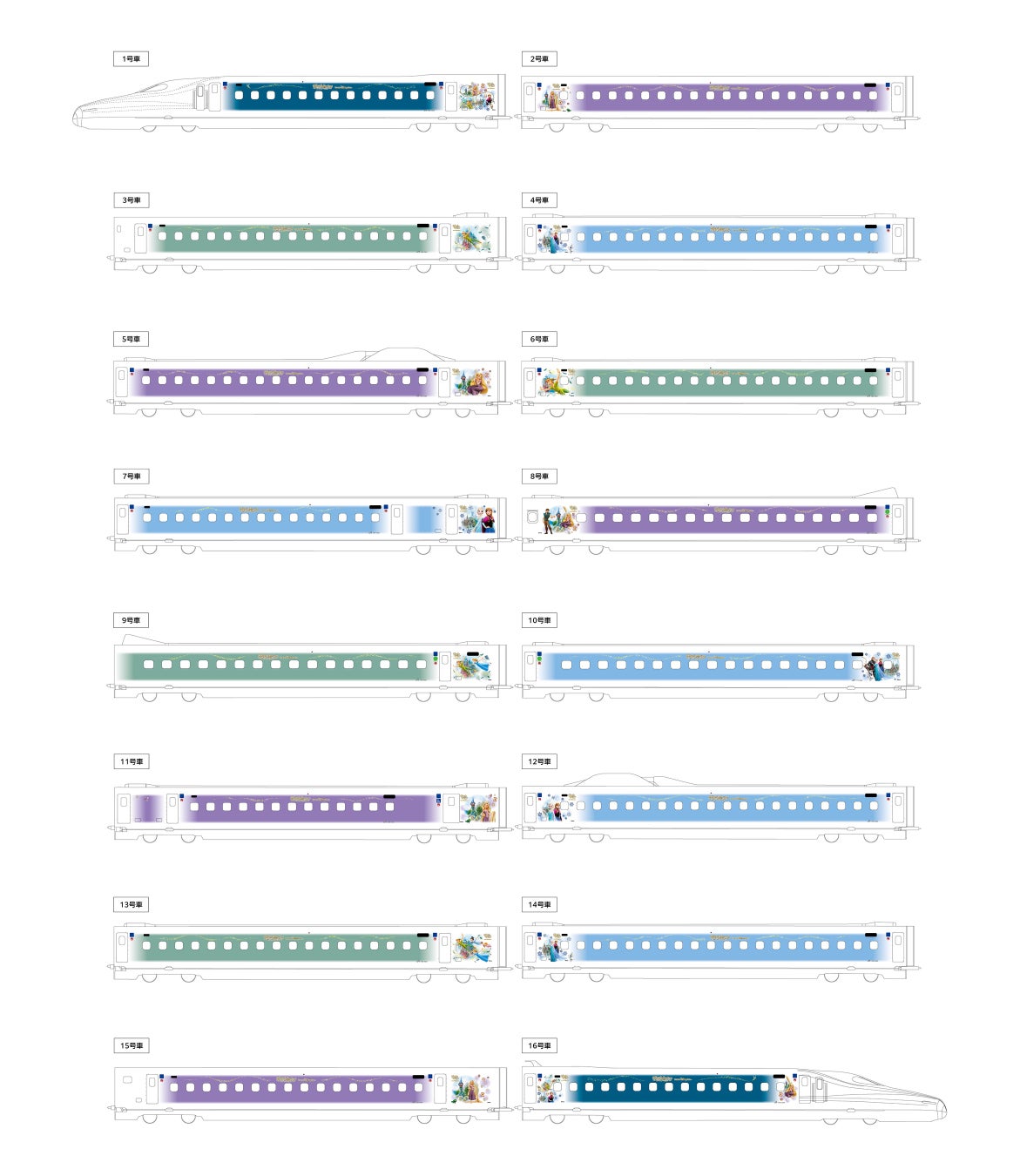 「Wonderful Dreams Shinkansen」の各号車のデザイン