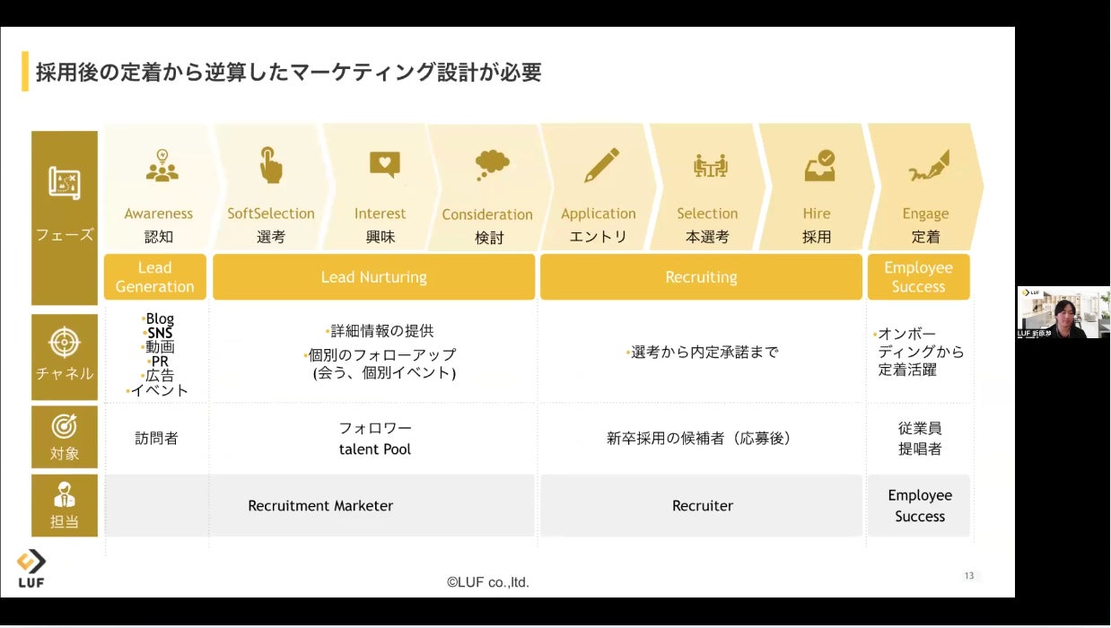 LUF株式会社(本社:東京都港区、代表取締役社長:堀尾 司)は、『即戦力となる新卒を見極めて育てる「採用と育成」の戦略と動画活用』にて登壇したアーカイブ動画の無料公開をいたしました。