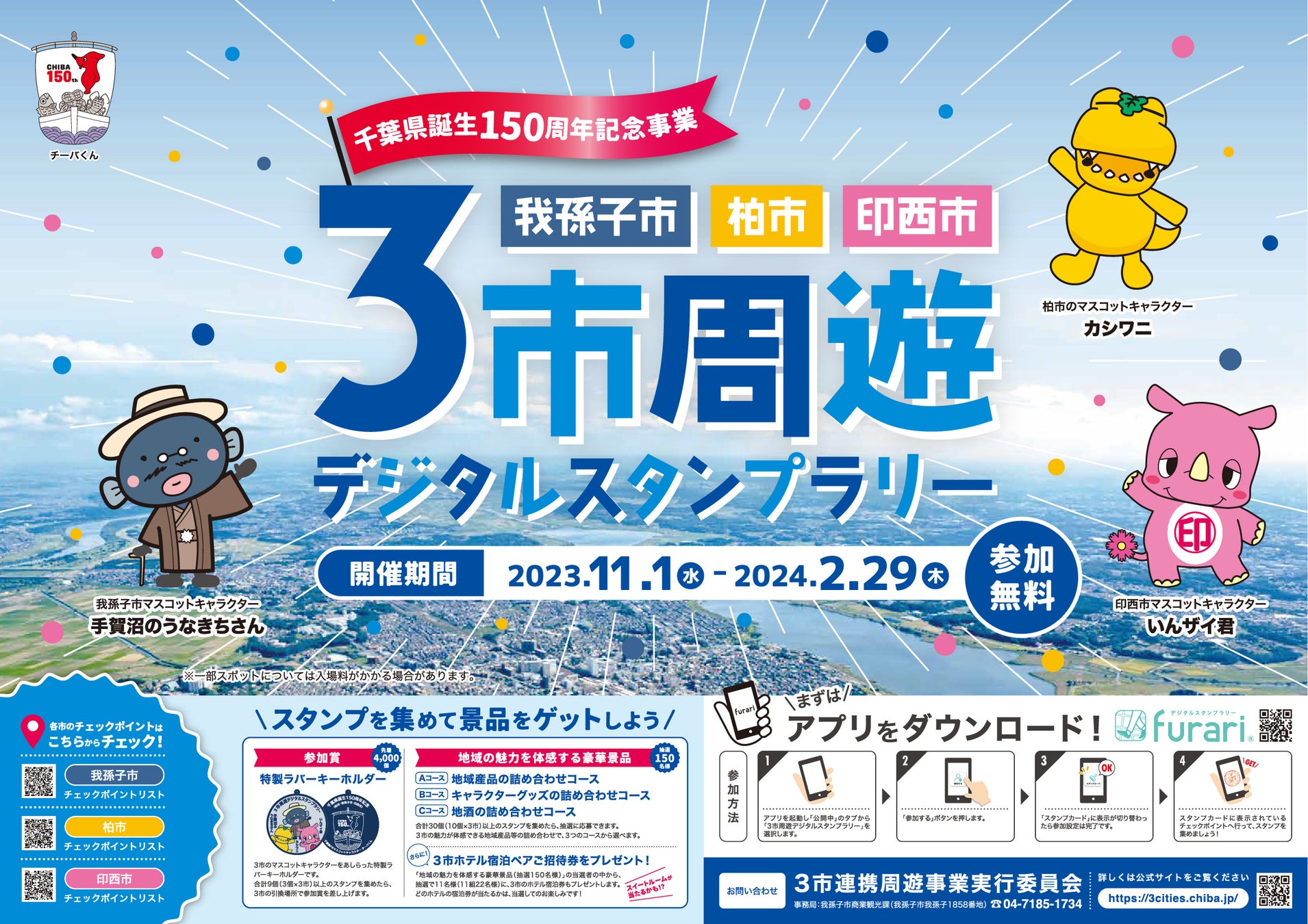 【参加無料】3市(柏市・我孫子市・印西市)周遊デジタルスタンプラリーに参加して、豪華景品をゲットしよう!