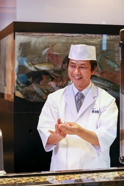 チェーン店でありながら、いけすがあり板前のいる廻転寿司にぎり長次郎。魚を〆て、捌いて、にぎる。板前の仕事ぶりを、ぜひその目でお確かめください。
