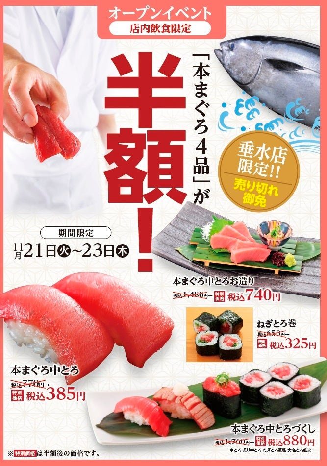 オープンイベントとして、本まぐろ4品半額イベントを実施