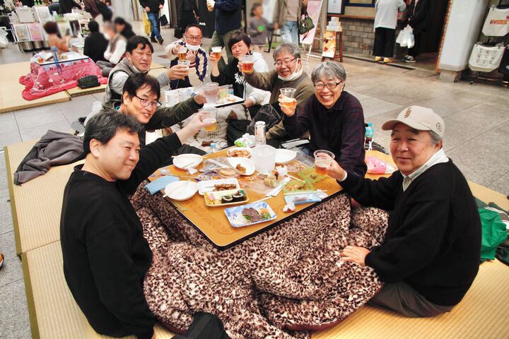 賑やかなお祭りですが、自分の席ではまったり過ごすことができるのも魅力。お店の人やお客さんと交流した後は、自分たちの座席でゆっくりと味わうことができました。土佐の「おきゃく」は、美味しい料理と地酒、そして人々の温かさを感じられる本当に素敵なイベントでした。