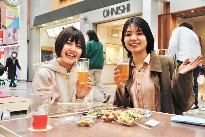 私たちも早速、屋台巡りスタート!まず、高知市に位置するクラフトビールブランド「SOUTH HORIZON BREWING」のクラフトビールを注文。カツオ・ウツボのたたきや、ちくきゅうなど高知の名物グルメから、から揚げ、焼きそばなど屋台の定番グルメも豊富にそろい、ついつい買い過ぎてしまいました。