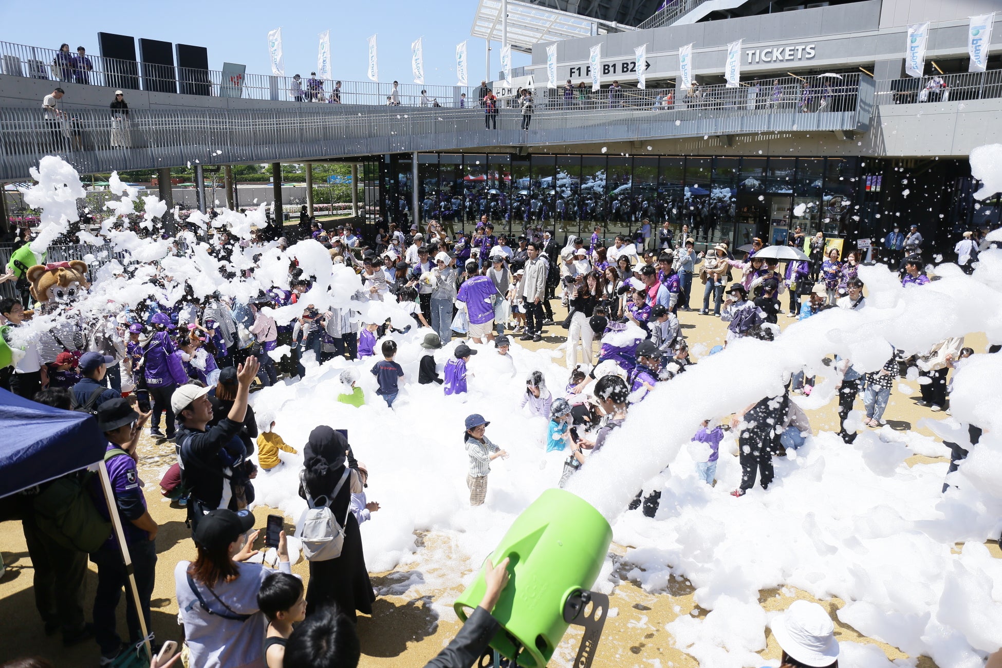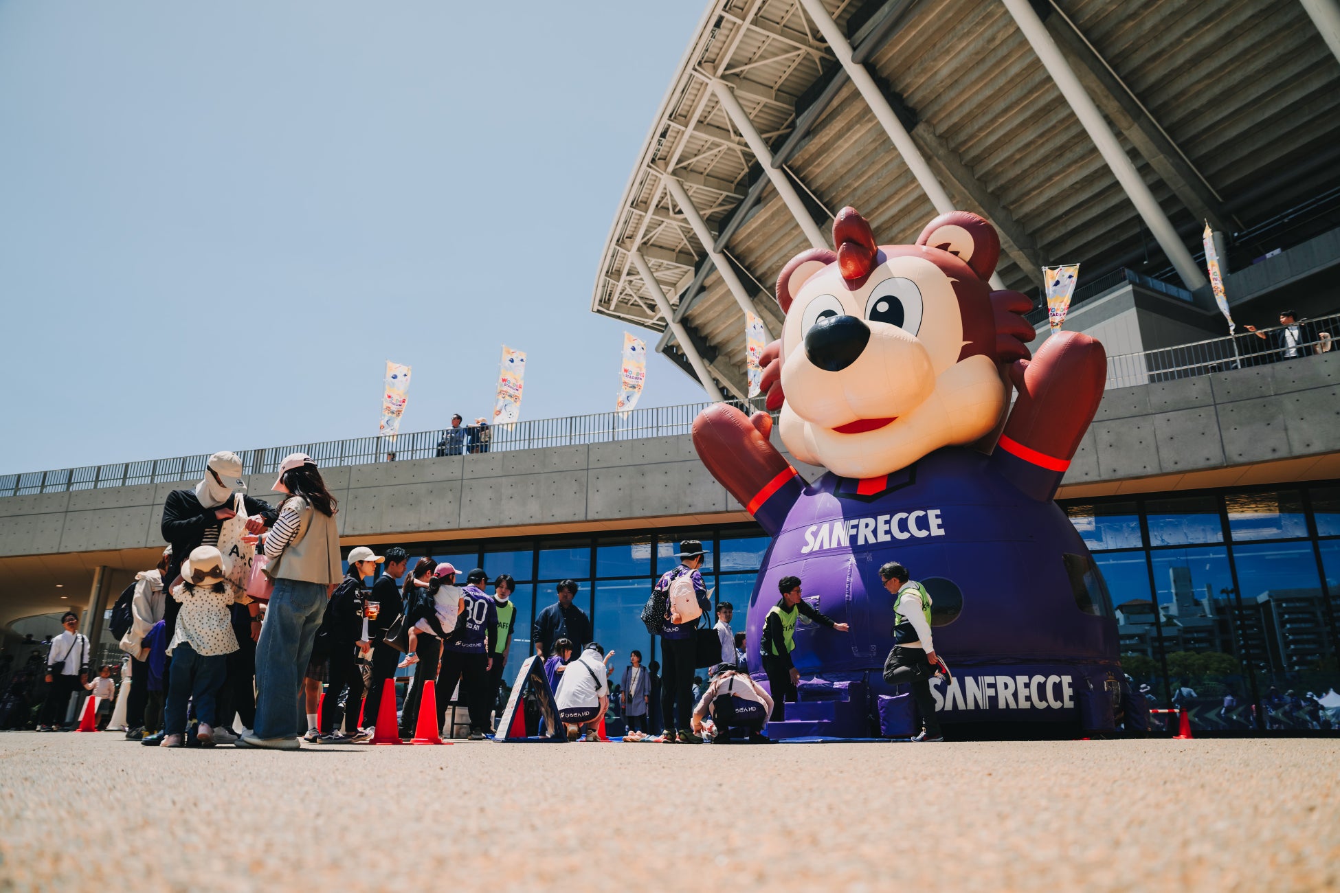 巨大なサンチェふわふわドームや、縁日定番の射的やわなげなど、ファミリーでも楽しめるコーナーが盛りだくさん!試合前のEピースにエナジーが充満します。