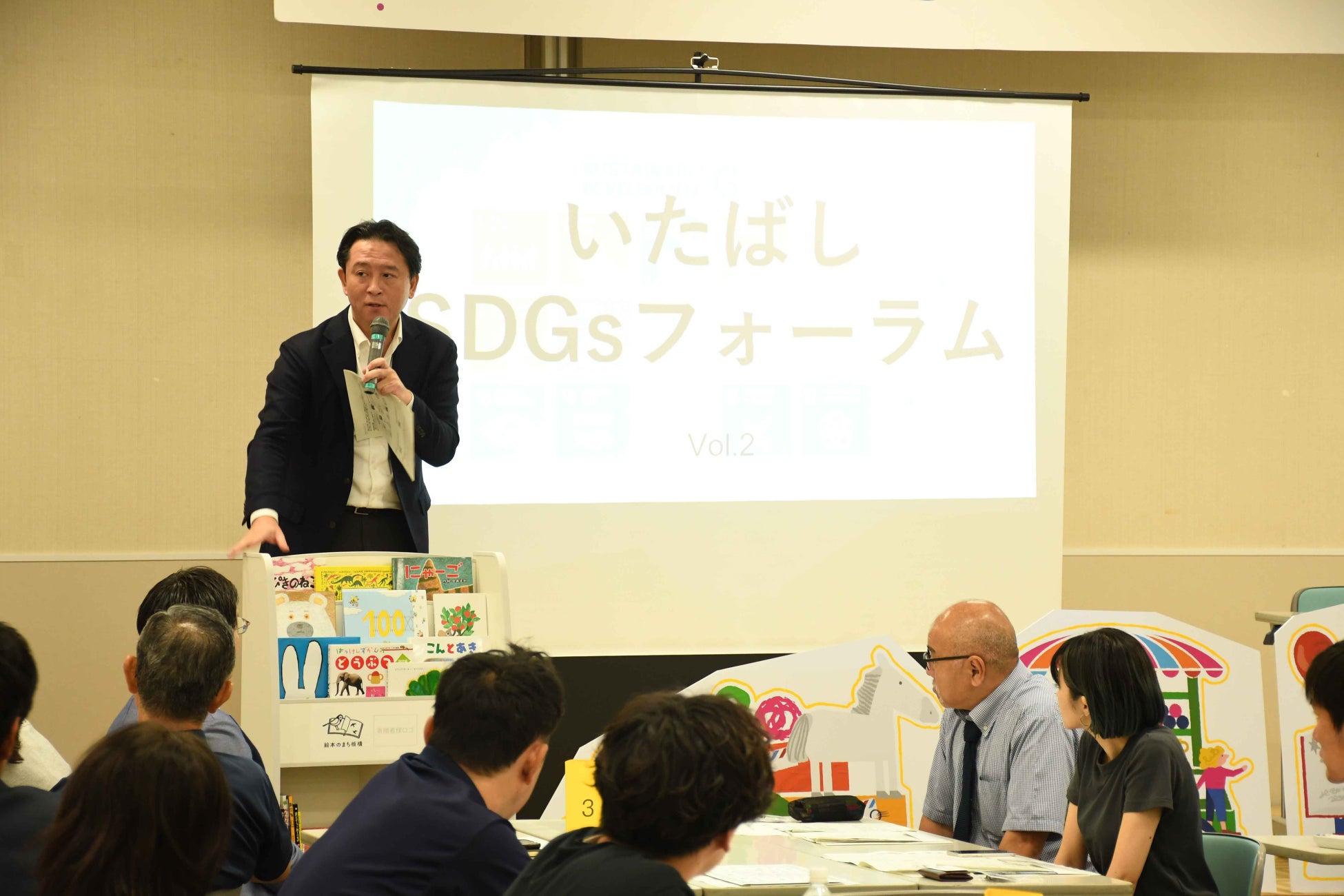 令和6年9月5日(木)に開催された「第2回いたばしSDGsフォーラム」にて、参加者である区内事業者等に対して、プロジェクトのお披露目を行い、絵本棚設置を希望する子どもの居場所(施設・店舗)、そして寄贈を希望する企業・団体・個人からの申込みを開始しました。