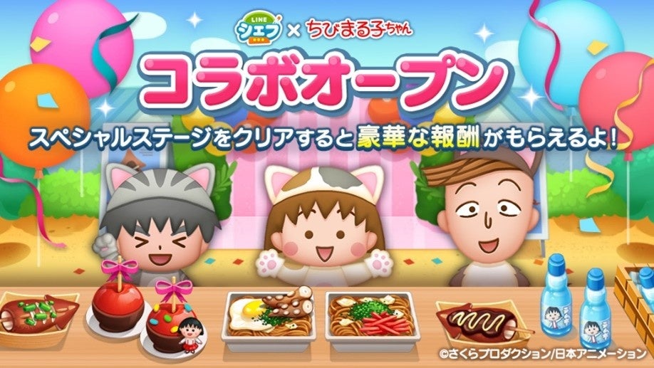LINEヤフー株式会社は、当社が展開するクッキングゲーム「LINE シェフ」(iPhone・Android対応/無料)において、『ちびまる子にゃん』とコラボレーションを開始しましたのでお知らせします。