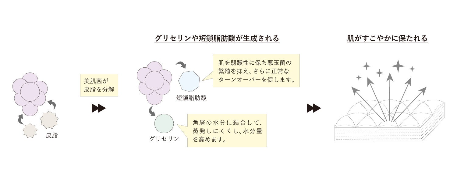 また、肌の保湿を助けたり、悪玉菌(黄色ブドウ球菌など)の増殖を抑制したりする役割も担っています。