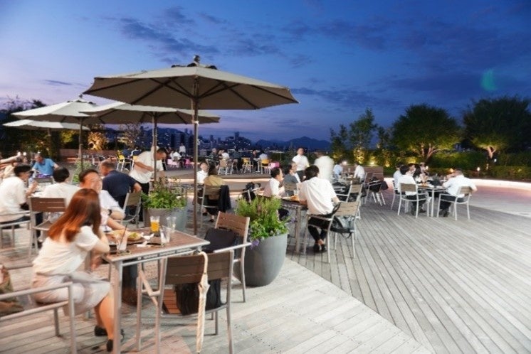 広島城を⼀望できる開放的な屋上庭園である「スカイパティオ」は、パセーラ全体のリニューアルに先駆けて2024 年春に先⾏リニューアルを⾏いました。